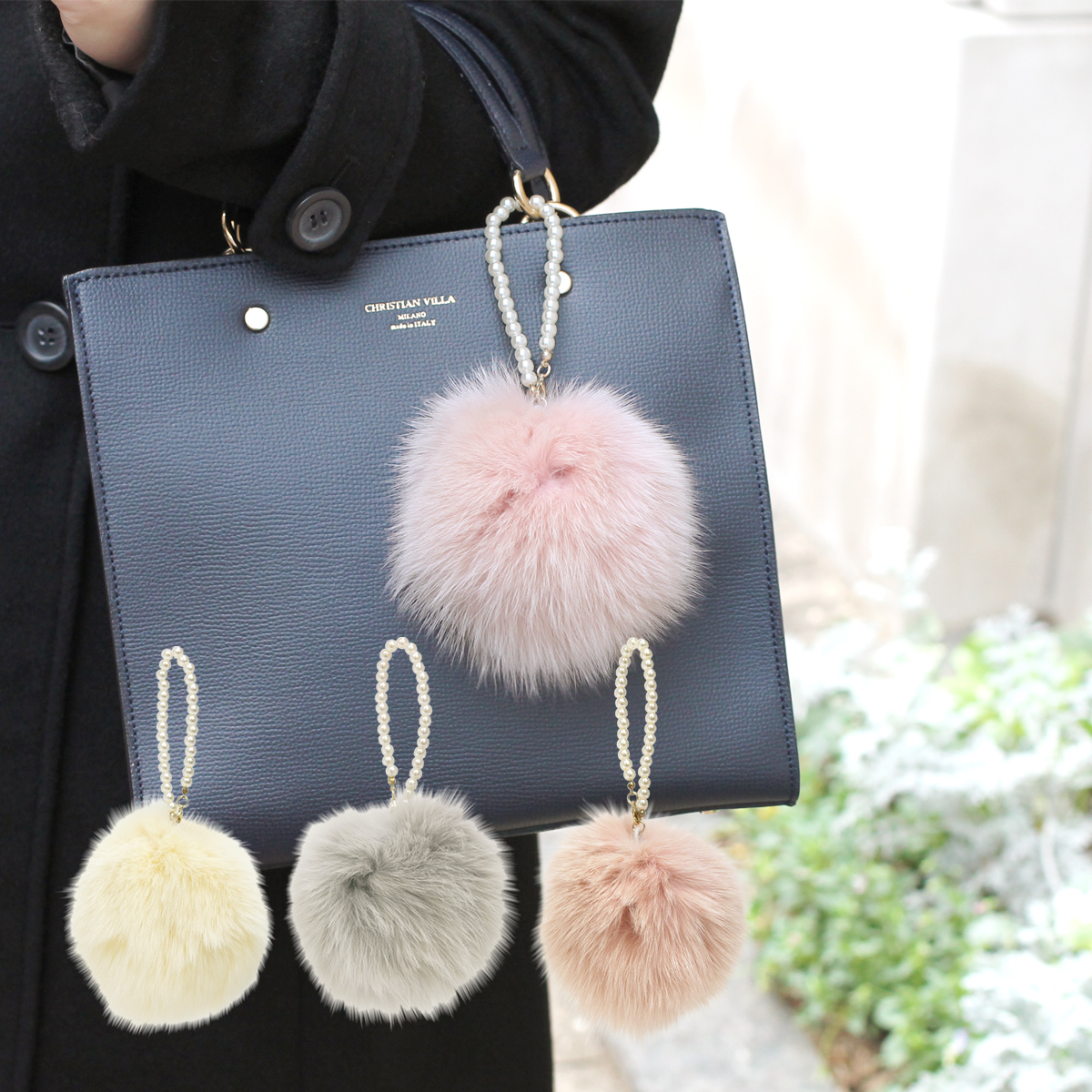 レディース ファー ポンポンチャーム パールチェーン リアルフォックスファー バッグチャーム ボンボン ふわふわ 可愛い 送料無料 bag レディス