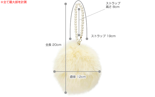 サイズ:直径12cm、全長20cm(ストラップ含む)