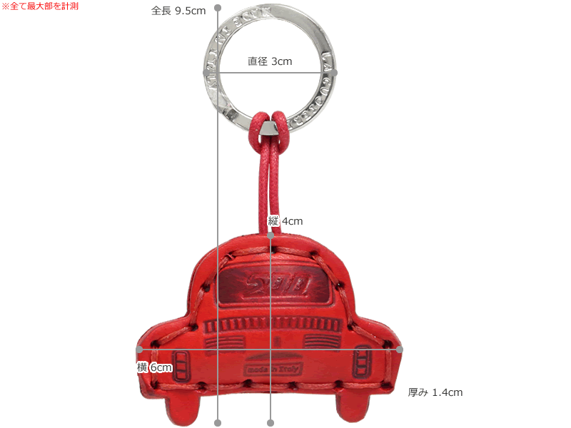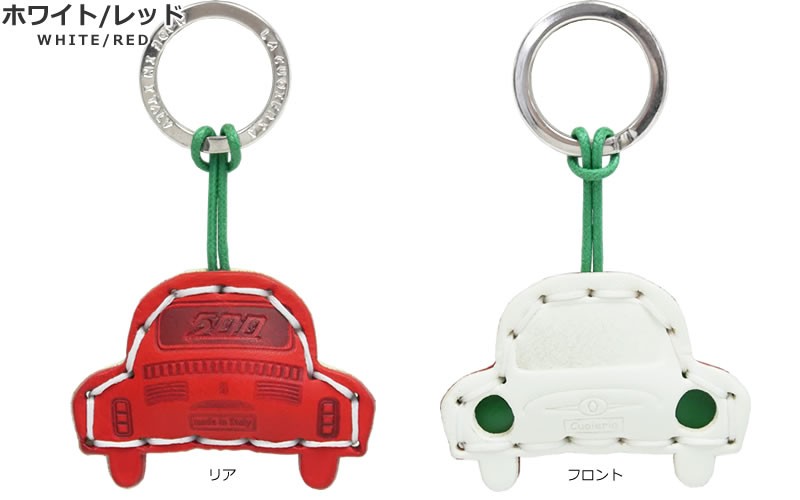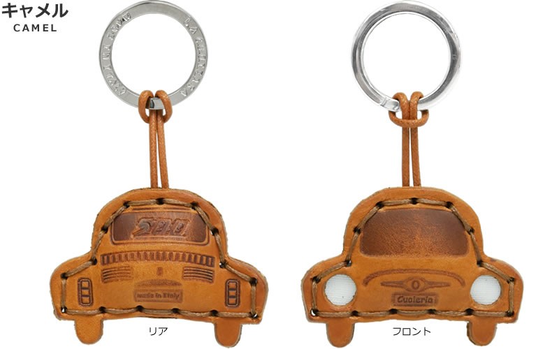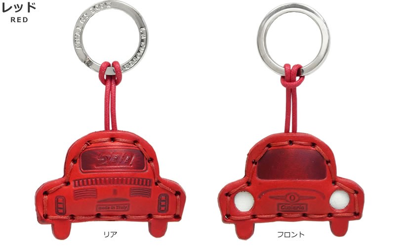【メール便・代引不可・ポスト投函】クリックポストで(送料無料)イタリアのクラシックカーをモチーフにしたレザーキーホルダー♪イタリアンミニカー、レトロなフィアット500(チンクエチェント)のフロントとリアをモチーフにしています。イタリアらしいカラフルな配色がとってもオシャレ!リアガラスに500の刻印が入っています。ベジタブルタンニンによる伝統的な技法で丁寧になめされた上質なトスカーナレザーを、熟練の職人がひとつひとつ丁寧にハンドメイドで仕上げています。イタリア南部の革小物メーカー【La Cuoieria(ラ クオイエリア)】は、イタリアらしいエッセンスを盛り込み、どこか懐かしい暖かみのあるレザークラフトを世界中に発信しています。