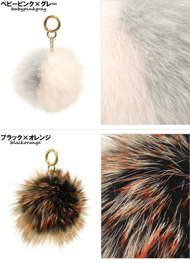 ポイント消化にオススメ【メール便・代引不可・ポスト投函】ふわっふわの天然ファーに癒される♪シルバーフォックスファーのポンポンチャーム!高級感たっぷりのボンボンをお手持ちのバッグに取り付ければ、たちまち華やかでゴージャスな雰囲気に♪<ベビーピンク×グレー>はツートンカラー、<ブラック×オレンジ>は中心がブラックで毛先が先端がレッドオレンジ、<ナチュラル×ブラック>は中心がブラックでメインがナチュラルカラー、毛先がオレンジブラウンカラーです。