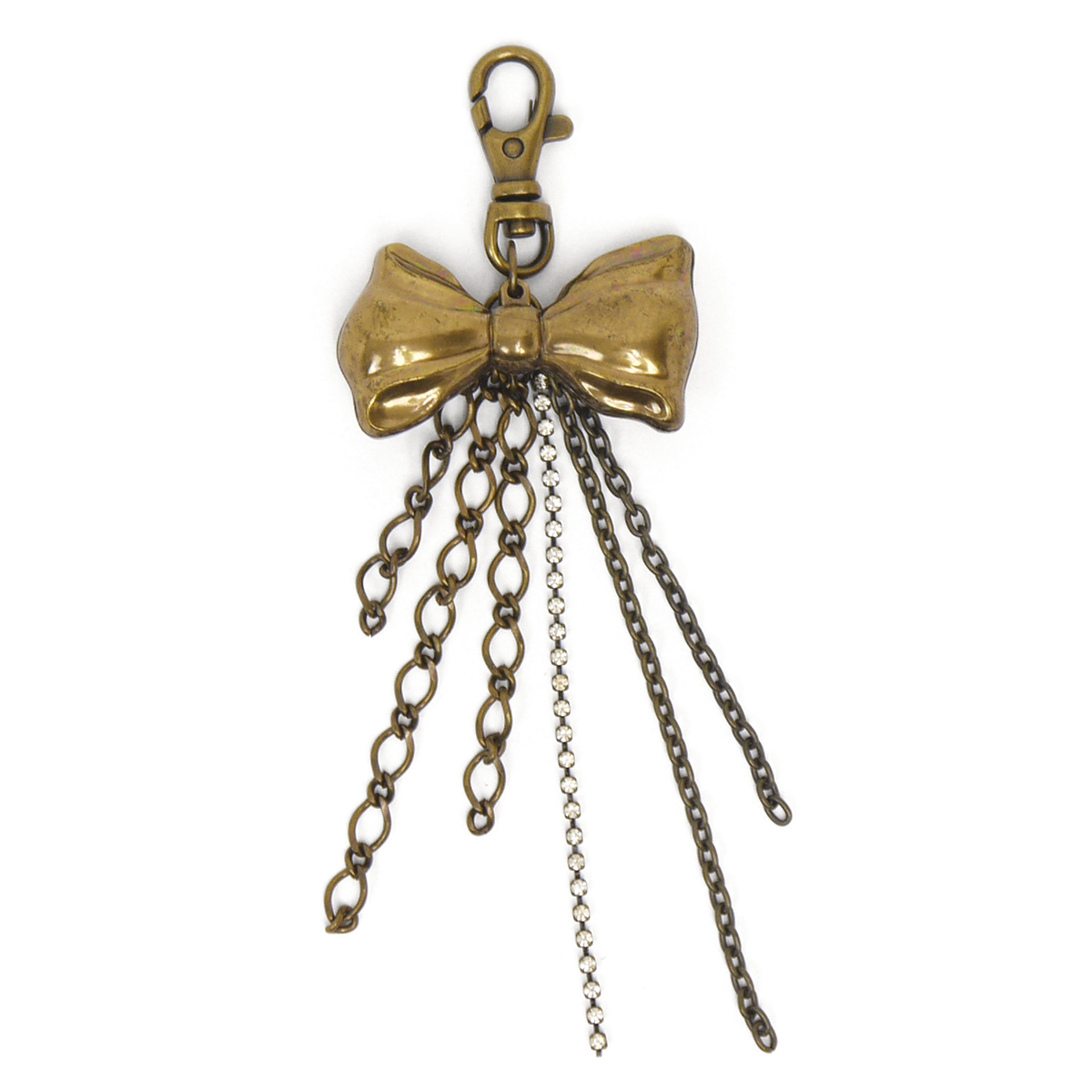 バッグチャーム レディース レディス キーホルダー リボン チェーン ラインストーン アンティークゴールド bag 送料無料 ポイント消化