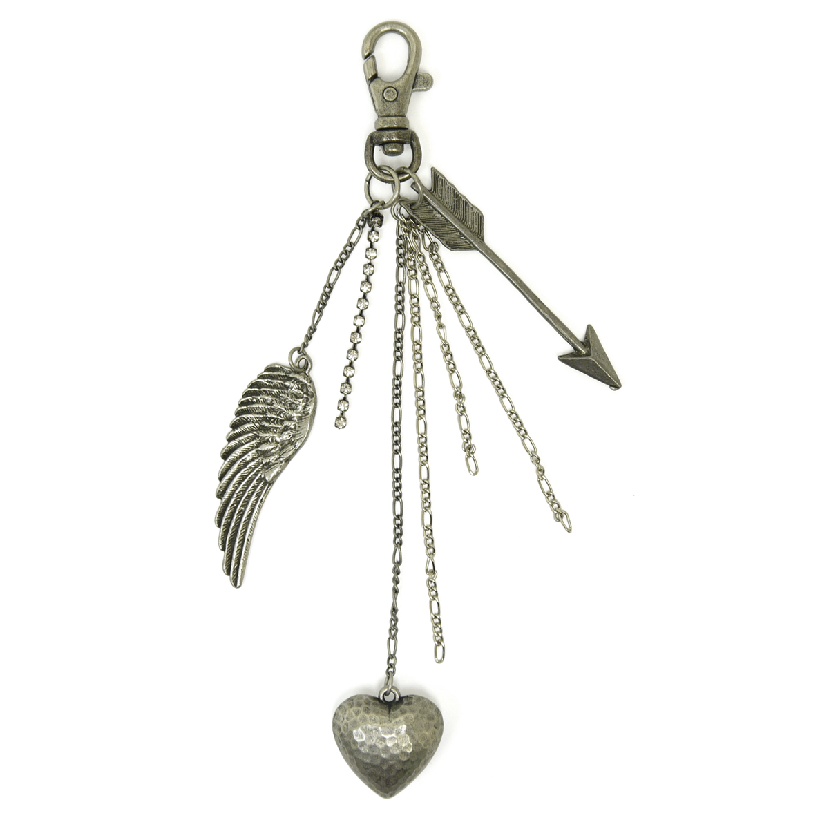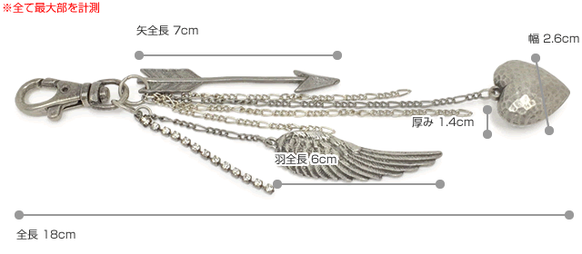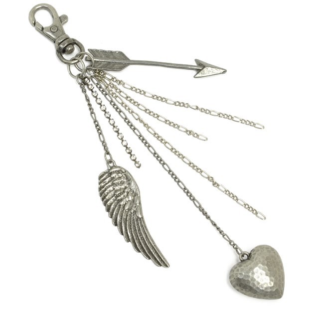 バッグチャーム レディース レディス キーホルダー アロー 矢 天使の羽 翼 ハート チェーン ラインストーン bag 送料無料 ポイント消化
