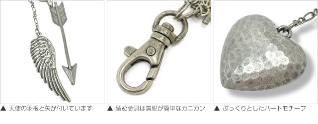 ポイント消化にオススメ【メール便・代引不可・ポスト投函】クリックポストで(送料無料)ぷっくりしたハートチャームと、まるで天使の忘れ物のような羽と矢が付いたバッグチャーム!さらにチェーンやラインストーンのフリンジが付いています。着脱が簡単なカニカン金具なので、その日の気分に合わせてお気に入りのバッグやポーチに付けてアレンジを楽しんで♪