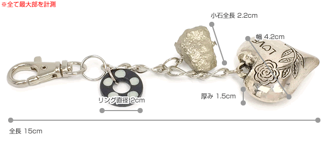 ポイント消化にオススメ【メール便・代引不可・ポスト投函】クリックポストで(送料無料)ぷっくりしたハートチャームに、まるで浮き輪のようなリングと小石モチーフが付いたバッグチャーム!アンティーク加工されたハートチャームには、ローズと「LOVE」の刻印が入っています。着脱が簡単なカニカン金具なので、その日の気分に合わせてお気に入りのバッグやポーチに付けてアレンジを楽しんで♪