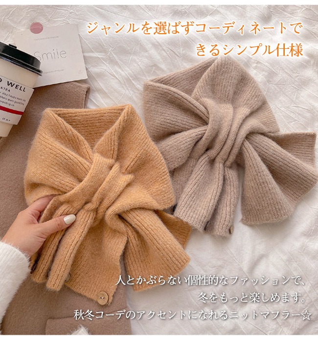 保温防寒 レディース マフラー 大人 ニット ティペット ニットマフラー 冬用 ふんわり 襟ボリューム コーディネート ショート もこもこ 婚式 誕生日 プレゼント