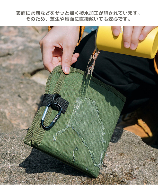 表面に水滴などをサッと弾く撥水加工が施されています。そのため、芝生や地面に直接敷いても安心です。