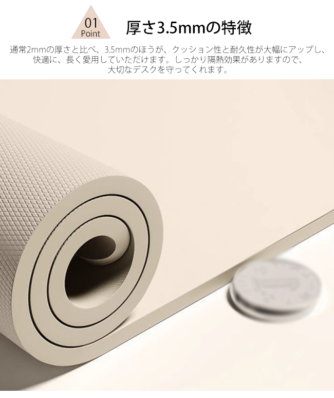 長期使用もできる厚み3.5mmのデスクマット
