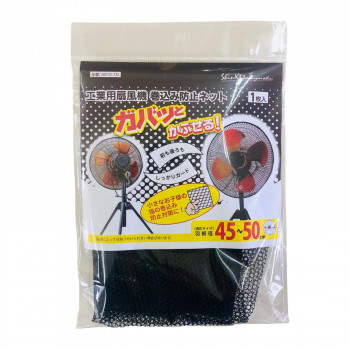 工業用扇風機の巻き込み防止ネットです。羽根径45〜50cmまでの扇風機に取り付けができます。裏まで被せてひもで結ぶだけで取り付けられます。