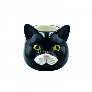 ネコをモチーフとしたセラミックのフラワーポット。ネコ好きさん向けのインテリアアイテムです。