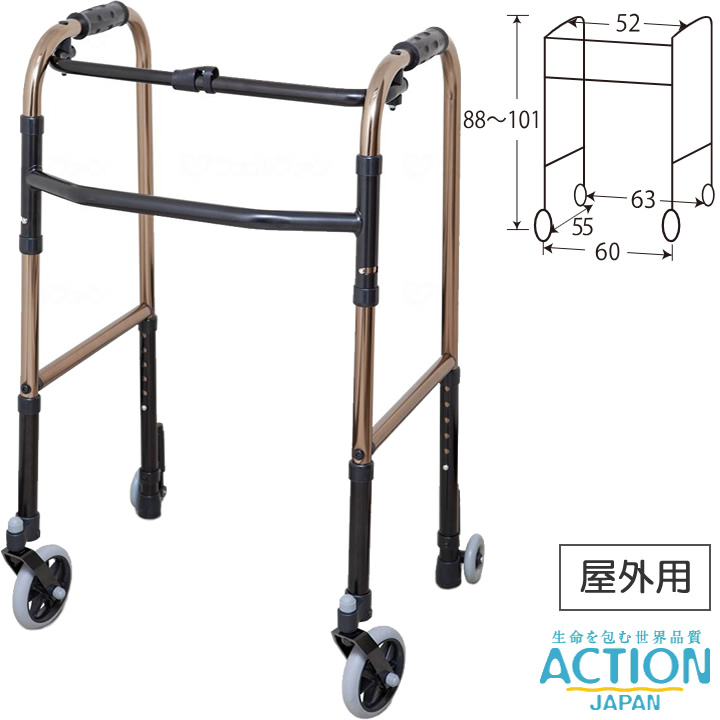 歩行器 キャスター付き歩行器 標準タイプ C2021LR アクションジャパン C2021LR-BR 手押し車 老人用 高齢者 シルバーカー歩行器 介護用品 UL-663032