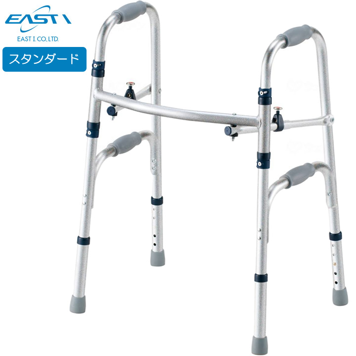 固定型歩行器で歩行すると足はもちろん手のリハビリにもなります。