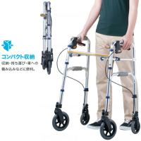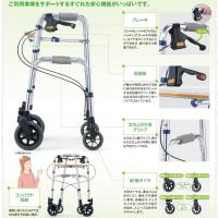 屋外での使用に特におすすめのセーフティーアームVタイプウォーカー。4輪大型ゴムタイヤがスムーズな歩行をサポート!