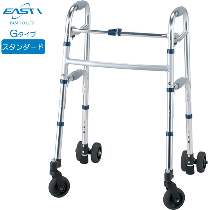 ワイド幅・4インチタイヤが6個ついたGタイプは安定性を高め、屋外での使用に特におすすめの6輪タイプの歩行器です。