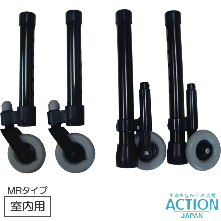 ○前輪キャスターが自在に動く室内用です。後輪は、体重をかけると軸足が床に固定される安心設計です。