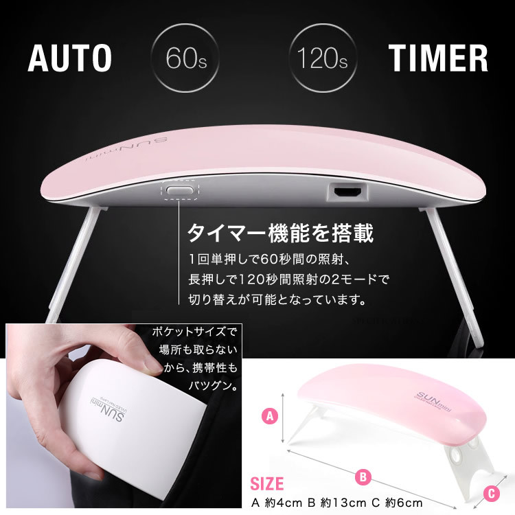 ネイルドライヤー ミニ コンパクト ネイルランプ ネイルライト ジェルネイル ライト LED レジン 硬化 ネイルアート 日本郵便送料無料 PK2