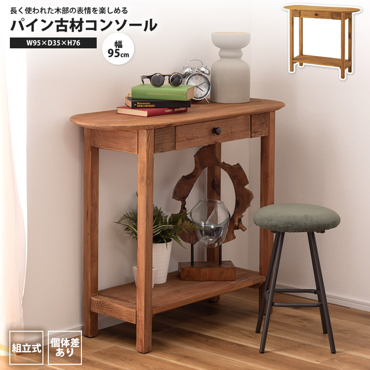 コンソールテーブル 幅95 パイン古材 おしゃれ シェルフ 玄関 リビング収納 アンティーク調 WE-891 コンソール