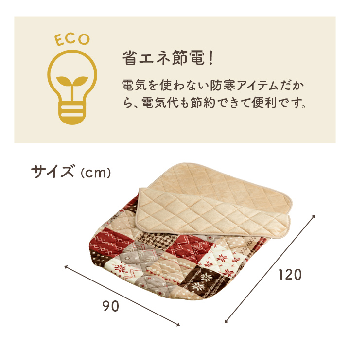 おひとり様用ポケットこたつ布団です。表地にはふんわりやわらかなフランネル素材を使用しています。ソファに座る時や、デスクワークで足先、膝が冷たい時にさっと使えてあたたかく、電気代も節約できて便利です。持ち運びも簡単なので、アウトドアなど外でもご使用できます。 |