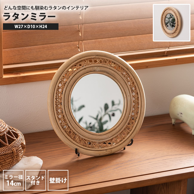 ウォールミラー F ミラー径14 手編みラタン 円形 おしゃれ 壁掛け 北欧 ナチュラル MR-718 ラタン