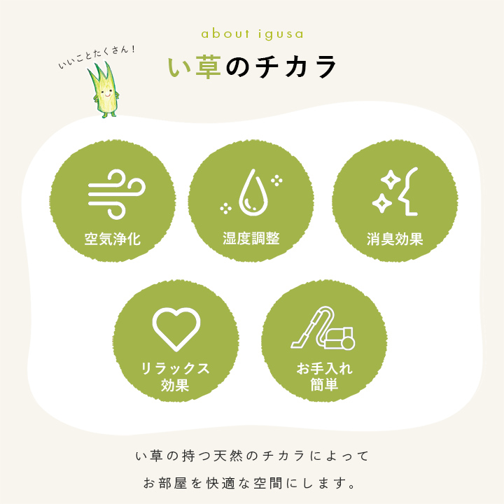 い草には空気の自然浄化作用、湿度の調節作用などがあります。