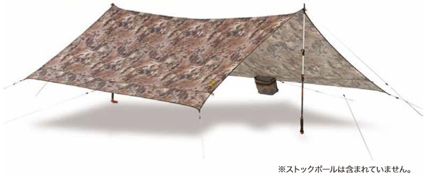 独特のカモ柄が特徴で、張り方次第で、日除けや、寝床にもなります。