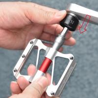 ■黒い部分のリングを手前に引くと簡単にペダルを外せます。自転車を折りたたんで輪行するときなどペダルだけが突出してしまう問題をクリアできます。