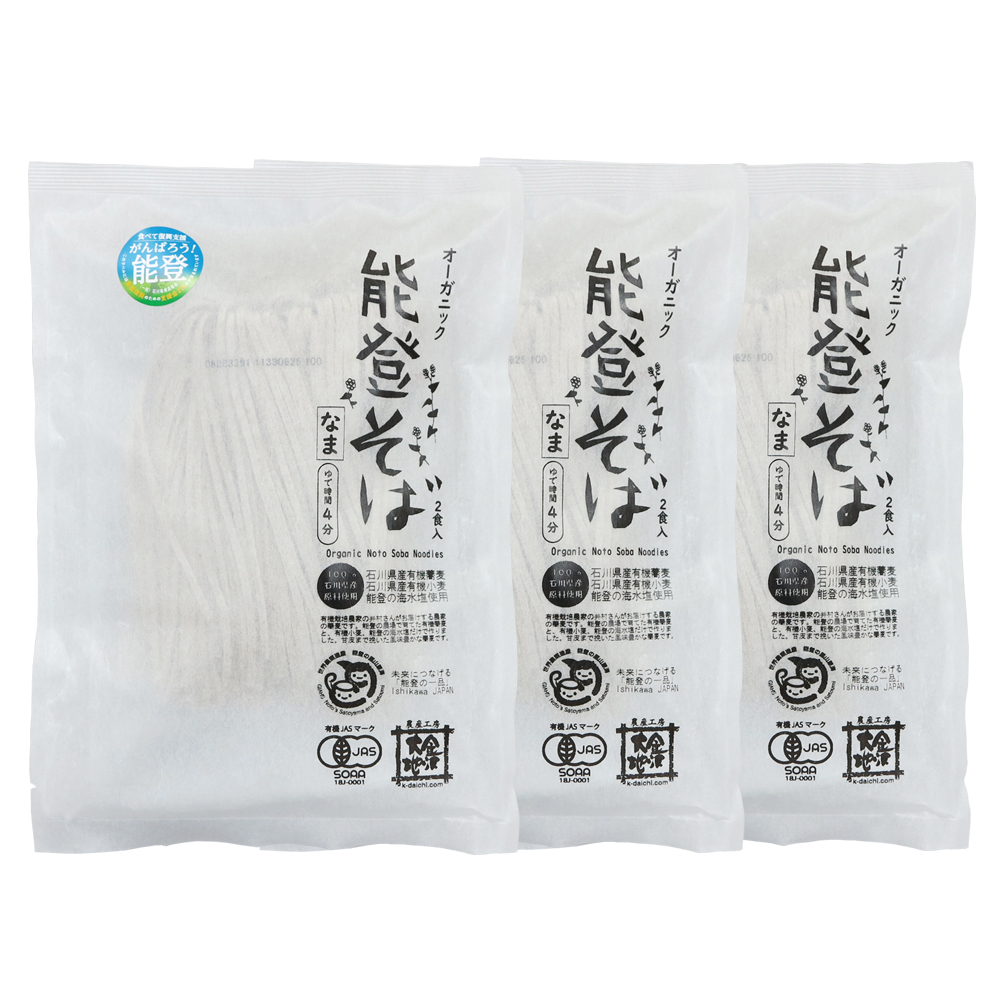 【メール便で送料無料】金沢大地 オーガニック 能登そば 200g(100g×2) 2食分 3袋セット【 石川県産 有機そば 海水塩】 有機栽培 オーガニック 能登 復興支援