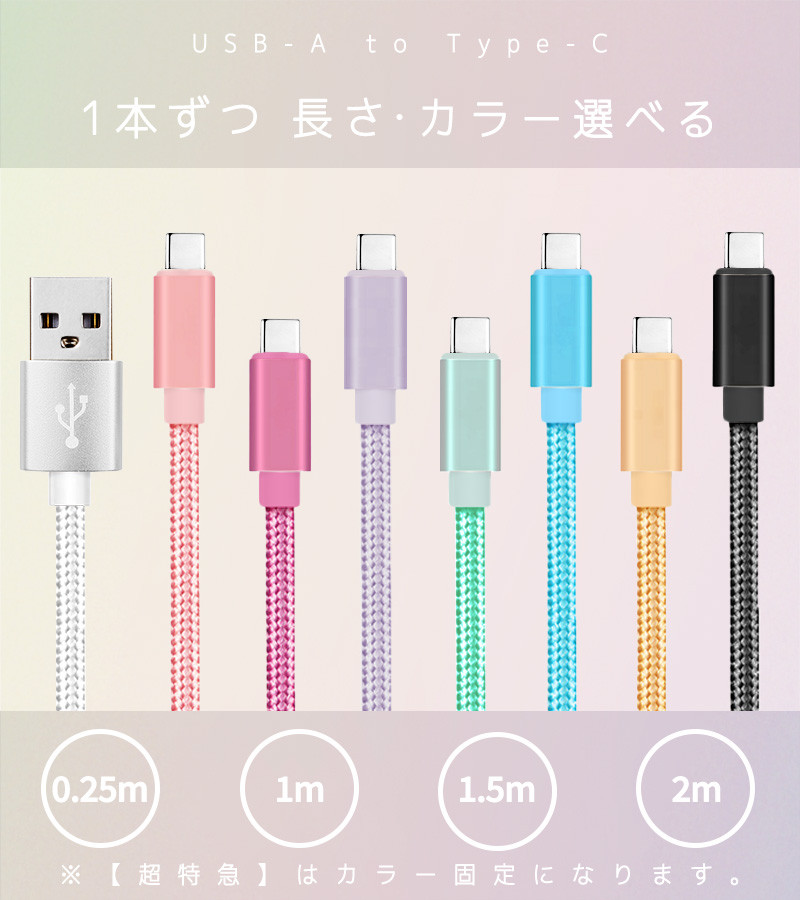 タイプC ケーブル アンドロイド 急速3A 選べる3本セット 超高品質 充電 充電器 短い 0.25m 1m 2m 充電コード 楽天1位
