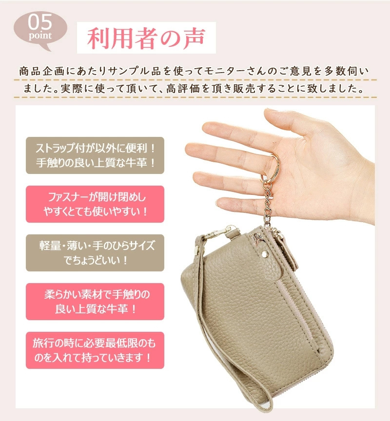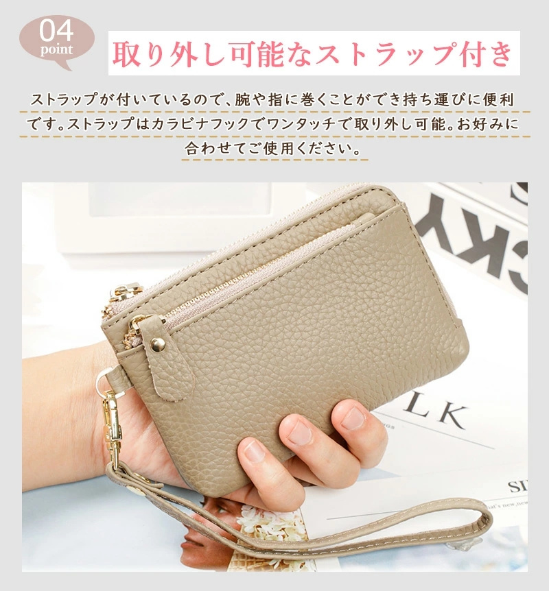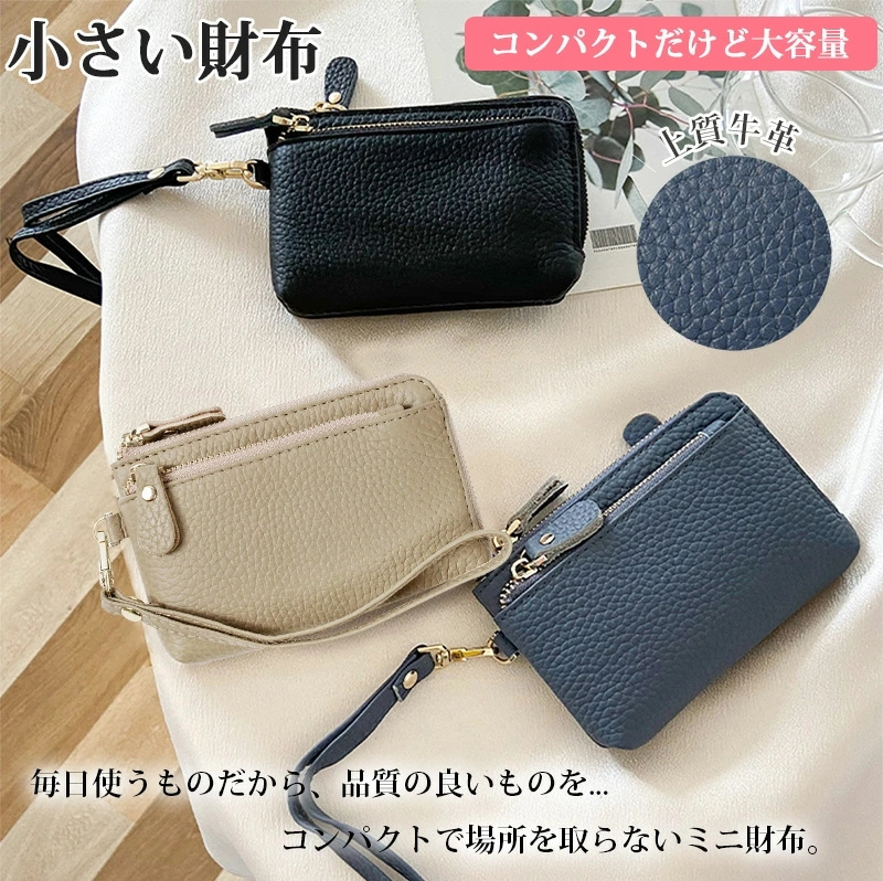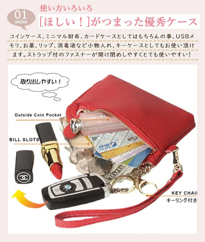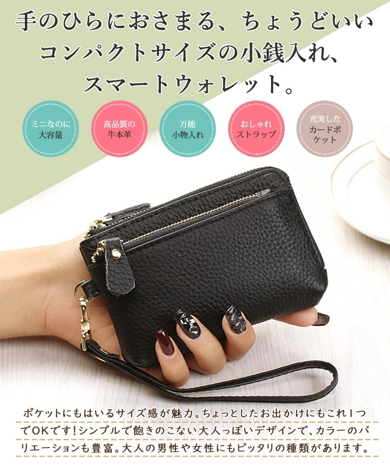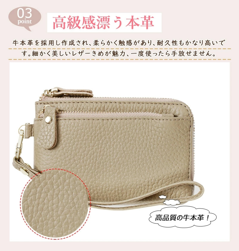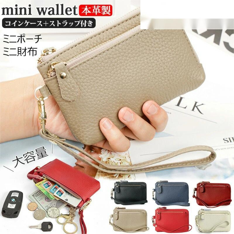 牛本革 上質感 ミニ財布 ミニポーチ wallet キーウォレット 小銭入れ 可愛い 大人かわいい スマートキー 車 軽い 柔らかい 小さい 財布 ストラップ付き キーリング付 スマートキーケース