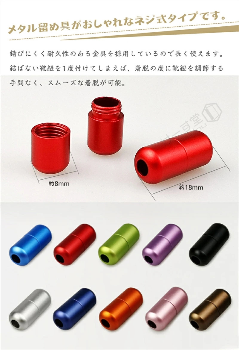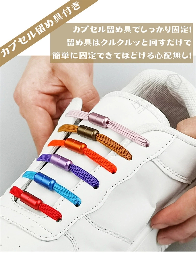 ?重量(約):10g ?セット内容:ゴム靴紐2本、カプセル留め具2個