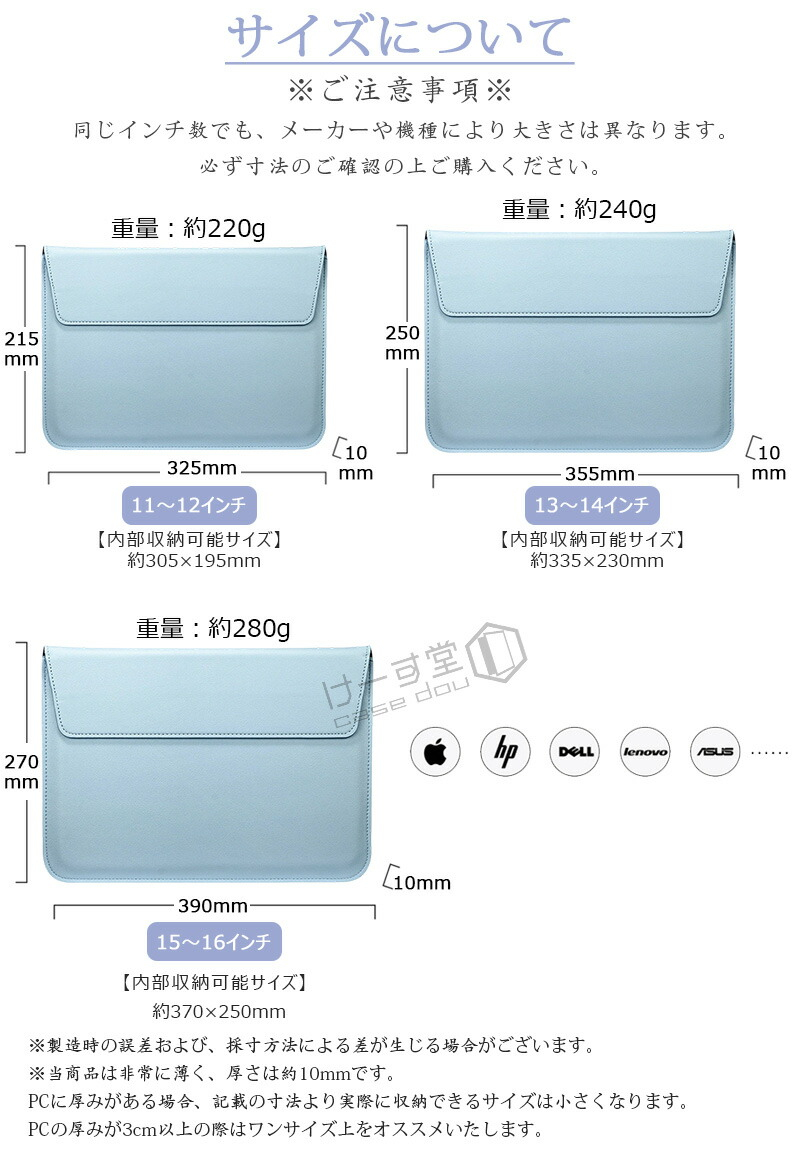 PCに厚みがある場合、記載の寸法より実際に収納できるサイズは小さくなります。
