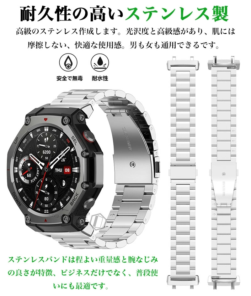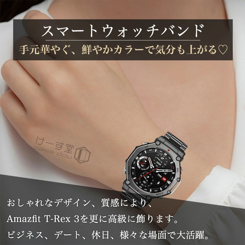 バンド Amazfit T-Rex 3 交換バンド ステンレス製 メタル Amazfit T-Rex 3 48mm スマートウォッチ 金属替えバンド Amazfit T-Rex3 バンド 金属バンド レディース メンズ 交換ベルト 交換ストラップ 腕時計 交換ベルト 交換ベルト 替えバンド ビジネス風 バンド 男女兼用 調整工具付き 交換ストラップ 時計ベルト 腕時計バンド 高硬度 交換ベルト 長さ調整可能 調整工具付き 運動 ランニング 交換用バンド ベルトだけ ベルト交換 防汗 通気 男性 女性