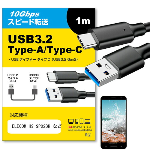 ELECOM HS-SP02BK 各種対応 USB Type Cケーブル 1m 【互換品】 USB 3.2 Gen 2 (USB 3.1) スマホ タブレット PC 充電 ケーブル ポイント消化 爆買