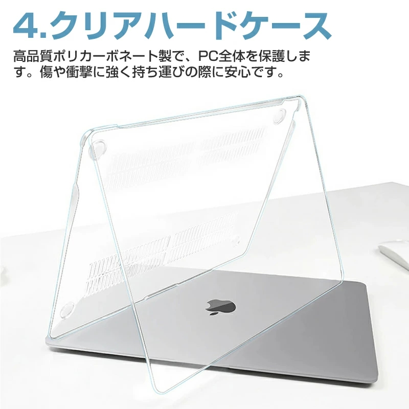 【4点セット】MacBook Air 13.6インチ専用の液晶保護フィルム、キーボードカバー、トラックパッドフィルム、透明ハードカバーがセットになった4点セット