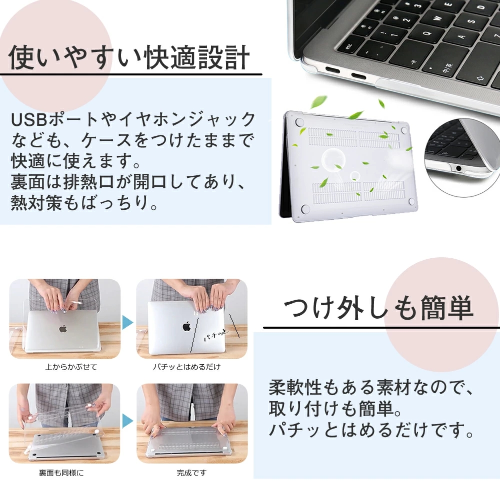 ・キーボードカバーぴったりフィットで故障の原因になりやすい水、ほこり、ゴミなどからキーボードをお守りします。専用設計なので違和感なく快適な打ち心地です!つけたまま閉じることができ水洗いもOK!(キーボードカバーは日本語用キーボードのみ対応)
