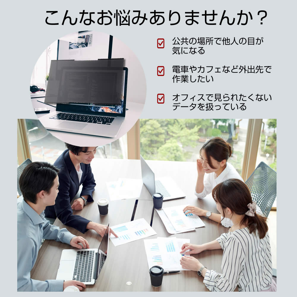 【 情報漏えい対策と作業時の快適さを両立する 吸着式 覗き見防止 プライバシーフィルター 】