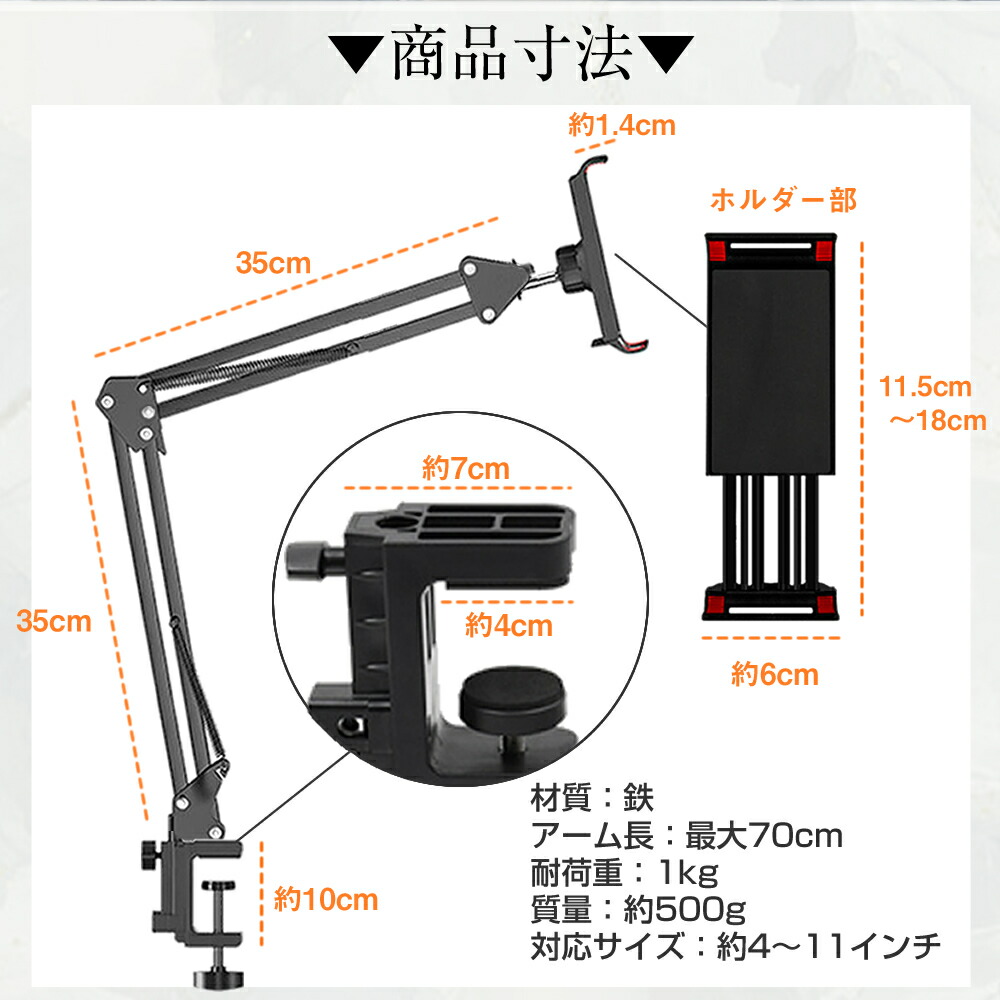Xiaomi Redmi Pad 2 Play Bundle [11インチ]◆クランプ式 スマホ/タブレット両用アームスタンドの特徴【クランプ式で簡単設置】厚み10mm〜60mmまでのデスクの天板やベッドのヘッドボードなどに取り付ける汎用タイプのスマホ、タブレット用スタンドです。クランプ式取付でしっかり固定、簡単に設置することができます。設置にスペースをとらず、使用後もそのまま折りたたんで省スペース。デスクを広くお使いいただけます。