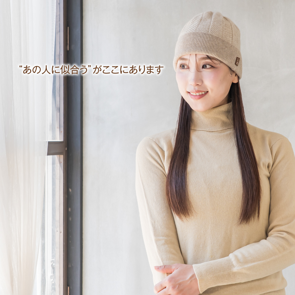 カシミヤ100%のニット帽子、ニットキャップは贈り物におすすめです。
