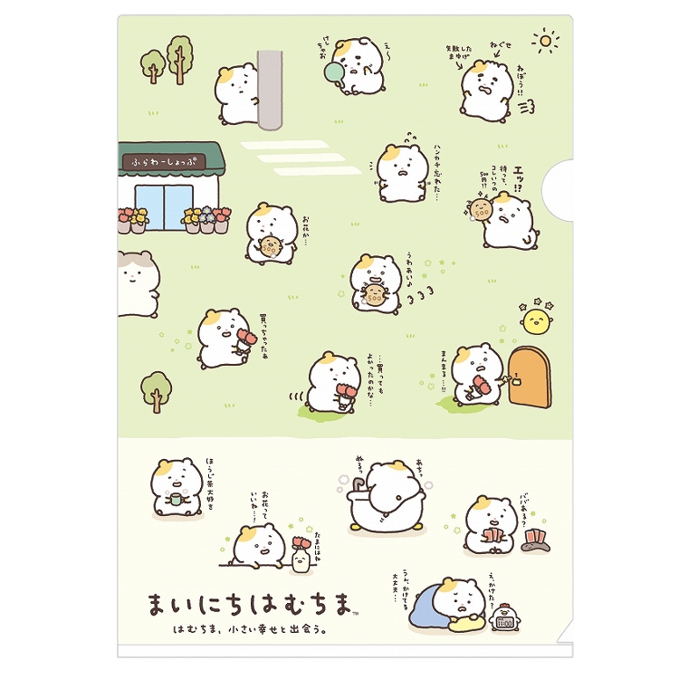 まいにちはむちま A4クリアホルダー FA16708 はむちま、小さい幸せと出会う。 グリーン