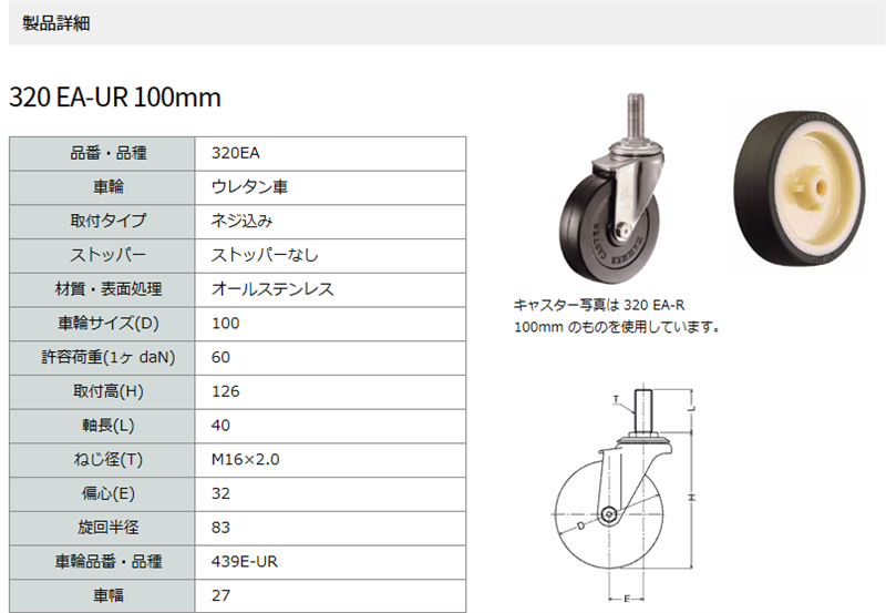 車輪サイズ(D) 100 mm