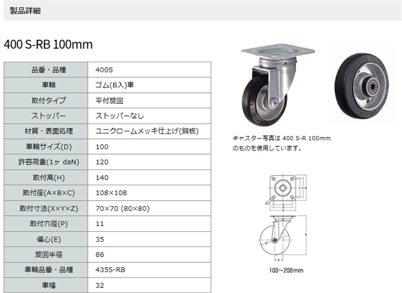 車輪サイズ(D) 100 mm