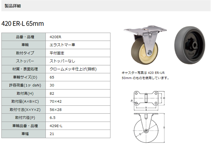 420ER-L65 ハンマーキャスター 固定ストッパーなし