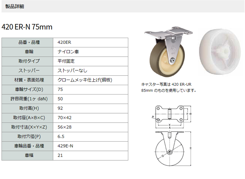 420ER-N75 ハンマーキャスター 固定ストッパーなし