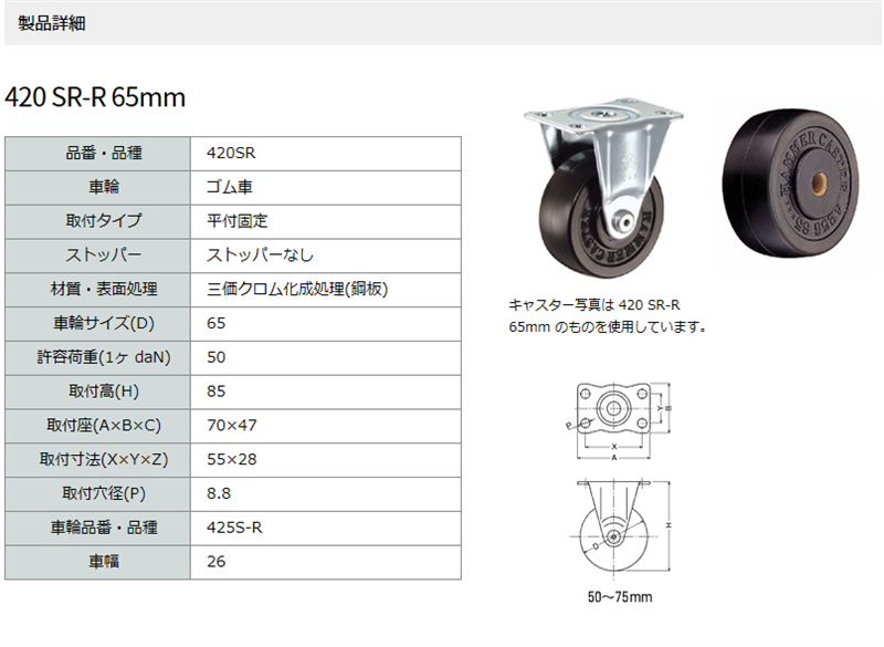 420SR-R65 ハンマーキャスター 固定ストッパーなし