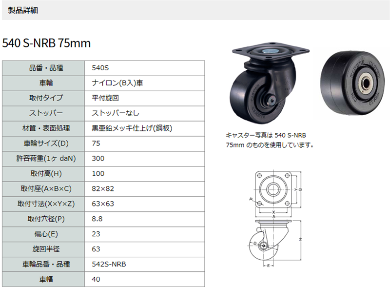 540S-NRB75 ハンマーキャスター 自在ストッパーなし