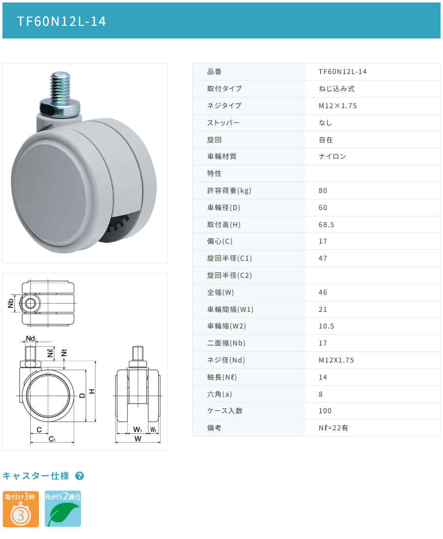 メーカーサイト https://www.tokai-caster.co.jp/