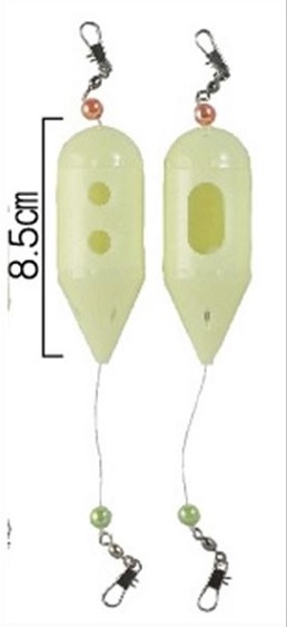 サイズ:8.5cm 2ケ入り ※実物と色が違って見える場合があります。あらかじめご了承下さい。 蓄光させればカゴの位置が確認できて、夜釣りの便利!