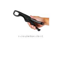 フックから手を守るロングタイプのフィッシュグリップ。●軽量で頑丈なグラスコンポジット製。●吊下げ強度MAX30kg。●魚の口をこじ開けやすい先端形状。●軽く握り込むだけでカチッとロック完了。●ロック後は、手を離してもしっかりと魚をホールド。●ハンドル部はラバーグリップ仕様で滑りにくい。●落下防止用のワイヤー入りランヤード付属。*本品は、グラスコンポジット強化樹脂製であり水には浮きませんので、付属のランヤードを取り付けての使用をお勧めします。