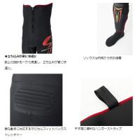 内側素材はスベリが良く着脱がし易い、高耐久タフフィットクロスを採用。新たに抗菌加工を施し、菌の増殖を最小限に抑えいつでも清潔!股上の設計を一から見直し、立ち込みが更に快適に。サイズラインナップが更に充実。待望のSA/3LA/SB/3LBサイズ追加ラインナップ。着座姿勢でもシューズ・タビの脱ぎ履きがし易い足首内側サイドファスナー仕様。機動性と保温性を兼ね備えた3.5mm厚クロロプレン。高機能衝撃吸収材ソルボをヒザ・スネ部に内蔵。万一の転倒時のヒザやスネの保護に威力を発揮。急激な動きに対応するラジカルフィットバックストレッチャー/ラジカルフィットヒザストレッチャー。流水抵抗を抑えた3Dタイトフィット裁断。着脱が楽なフロントファスナー。ズリ落ち防止のシャークスキン。立ち込みに有利なハイバックカット。足首をまとめるダブル面ファスナーストラップ。干す際に便利なハンガーストラップ。日本製。