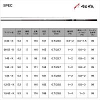 全長:5.00m 継数:5 仕舞寸法:111cm 標準自重:165g 先径/元径:0.7mm/23.7mm 錘負荷:1-2号 適合ハリス ナイロン:0.8-2号 カーボン含有率:99%