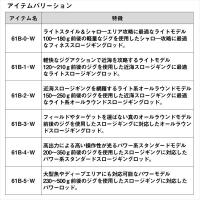 運動神経抜群のフラッグシップスロージギングロッド。軽量&ぶち曲げコンセプトはそのままに運動神経を大幅に向上し、アングラーの負担軽減と究極の水中の感度を実現。■61B−4・・・高出力による高い操作性が光るパワー系スタンダードモデル。200〜350g前後のジグを使用したスロージギングに対応したパワー系スタンダードスロージギングロッド。運動神経の良さをテーマに作り上げたジグを思い通り動かすことのできる反発力とパワーを備える一方、ロッド全体が仕事をすることでアングラーへの負担の少ない設計となっている。#4はミドル〜ディープエリアを得意とし、ジグをアクションさせることができるロッドパワーはスローなアクションはもとよりパワージャークや高速ジャークも得意とする。大型魚との相性も抜群で、ロッドの反発力を活かした力負けしないファイトを可能にしてくれる。